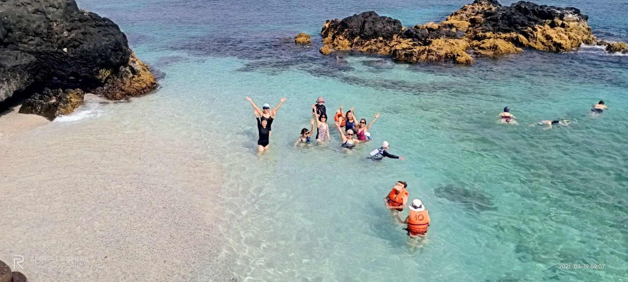 Ngày 2 chúng tôi cùng lướt sóng bằng xuông bay - tên gọi cano của người địa phương nơi đây đến Maldives phiên bản Việt, ở đây tất cả đều nhỏ bé đúng với tên gọi của hòn Đảo này. Phải nói nước biển nơi đây rất trong và xanh biếc và cát rất trắng. Vì thế mới có câu “ Lý Sơn – Biển xanh, cát trắng và nắng vàng”.