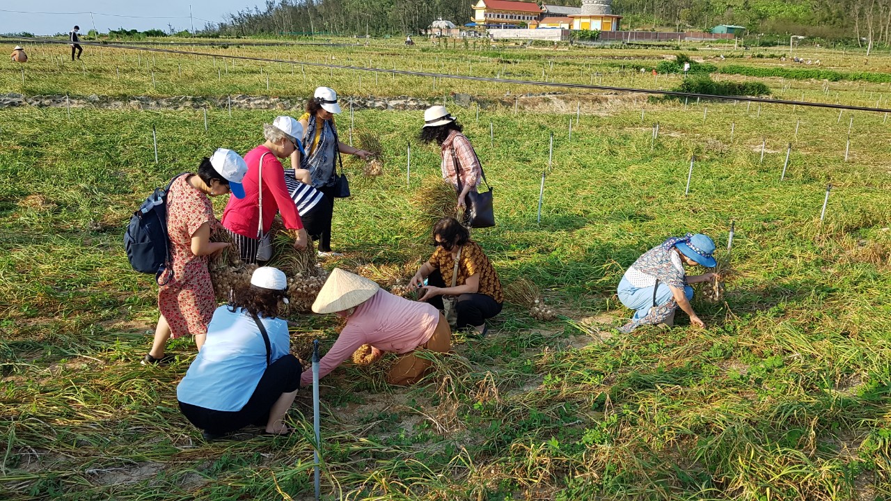 Đoàn cùng người dân trải nghiệm thu hoạch tỏi