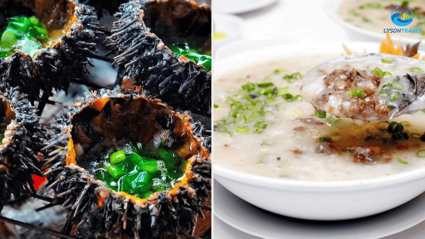 Nhum nướng mỡ hành & cháo nhum Lý Sơn